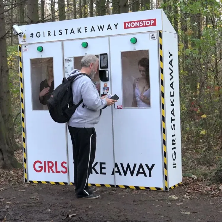 Ein alter geiler Mann war im Wald auf der Suche nach Pilzen. Er fand den ersten tschechischen Spielautomaten \"GirlsTakeAway\" mit Mädchen und er wählte Jessica Blue alias Ela Nek. Diese dreckige Hure liebt Sex mit alten Männern.