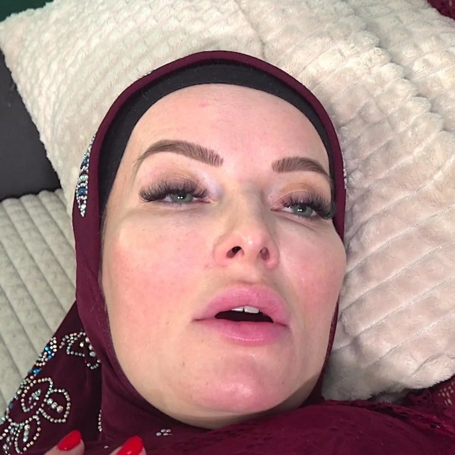 What a beautiful face she has! I'd like to cum in his mouth and clean my cock in the niqab.