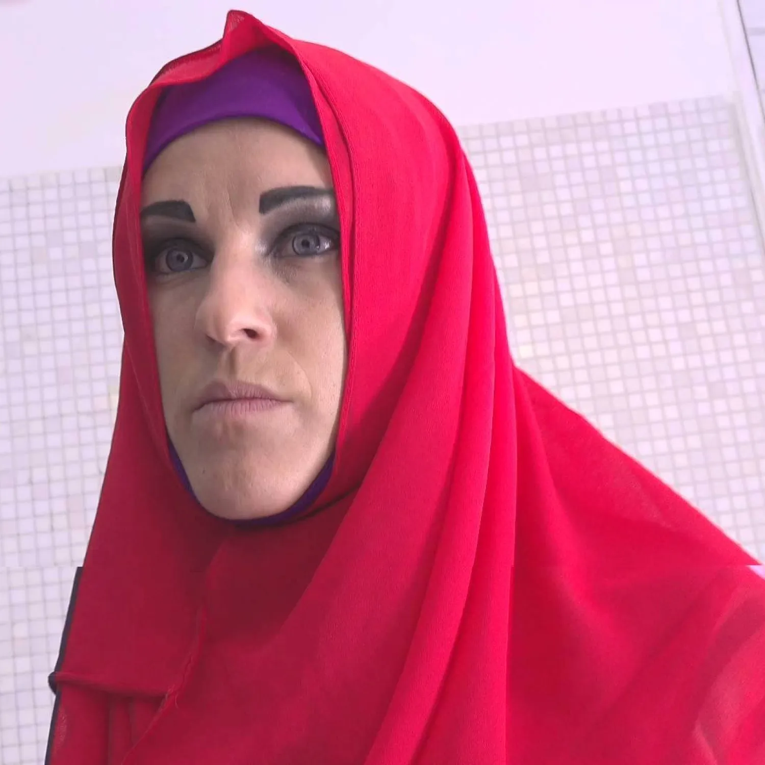 Düzgün vücutlu Müslüman tanrıça biraz beceri gösteriyor